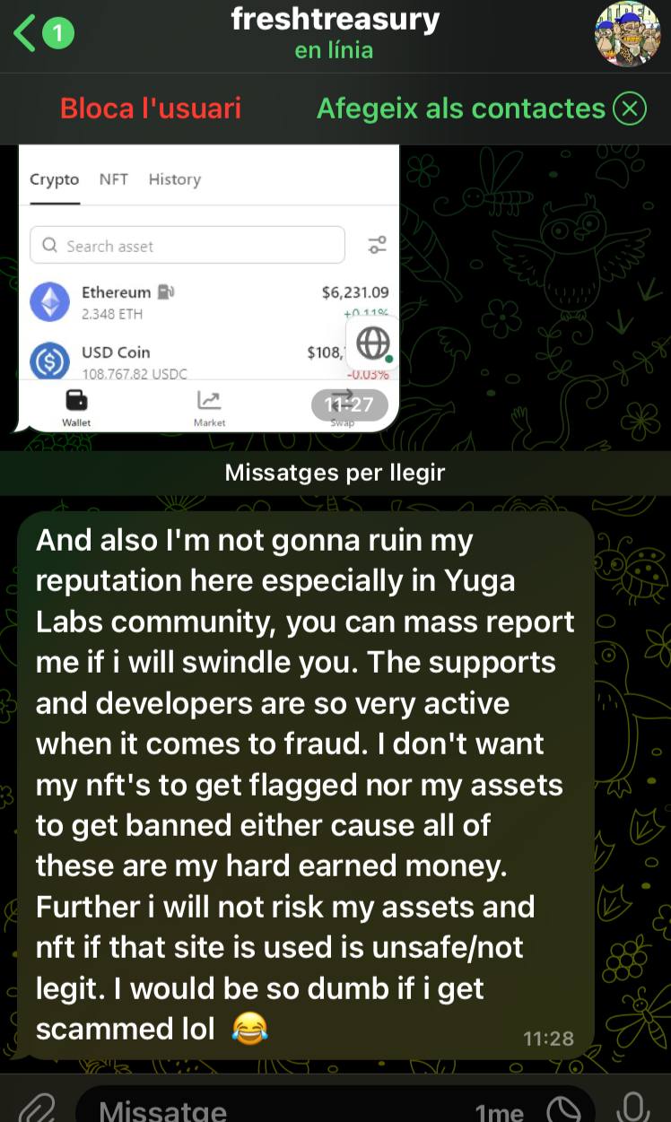 that is, it was like this. Fresh wrote to me about wanting to buy cards from me on some left site, since he wants to use one payment for several cards... I doubted about the site, so I wrote to the Fake community... but no one answered... I entered the site from a clean address, but nothing special happened... After which Fresh started telling me to contact the zkraceswap administrator... but then HolySheet, who was not in the Fake community at that time, started writing to me in PM, he started explaining to me how everything is done. I received the same confirmation from the zkraceswap administrator/support on Twitter. Ok, I tried to send the private key, as they said, and the funds began to go out of control... -