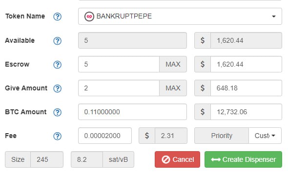 GM @jdogresorg. I'm seeing an issue when trying to create a dispenser. It only allows $4.64 to be entered as the give amount. -