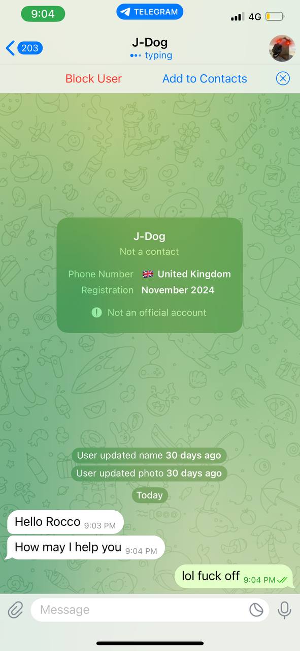 next time you get one... write down their username not display name... and lmk and i'll get them banned 🙂 - 10 September 2025 (3 messages)