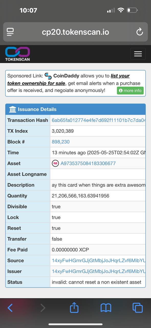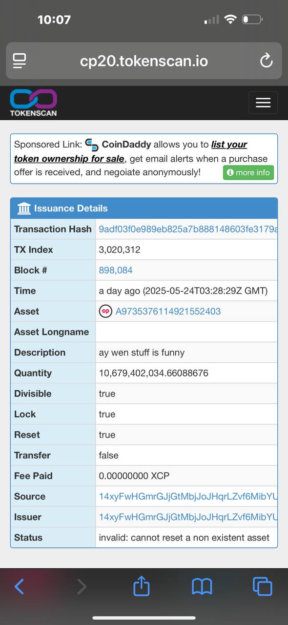 thoughts? protocol issue maybe?bc1q4v9rnt27fljdku8awwraec3ws3wv0uv8gfhkau - XCP.ioView Counterparty assets and balances.
