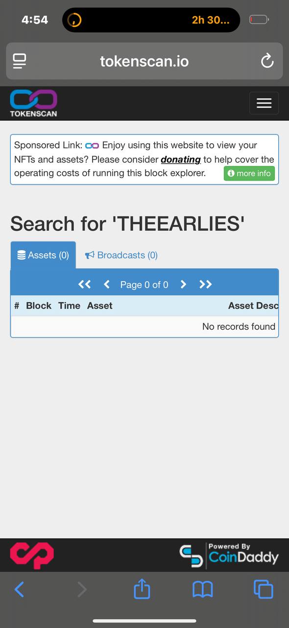 This is his tx, he tried to issue theearlies and although his tx confirmed, the asset was never issued