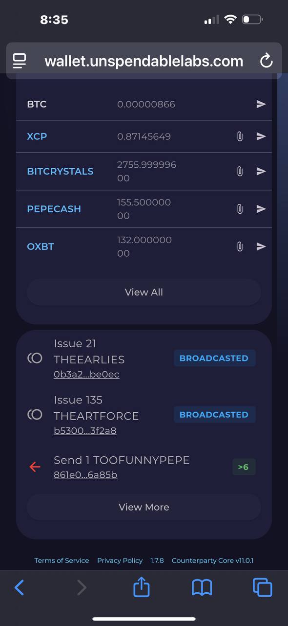 https://horizon.market/explorer/tx/8ccca1bee6708203b5b71e7640c43c7a57482fa3830bc8ff177a04c1e9656ab5 -- 0.00007499 -- 239 XCP