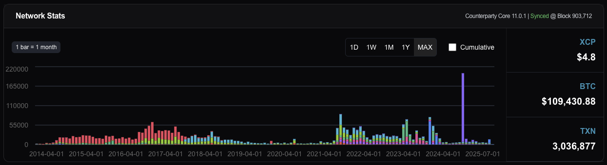 There was a clear dichotomy between the influx of “users” (real/fake) that stamps brought, and the lower volume niche that counterparty was.